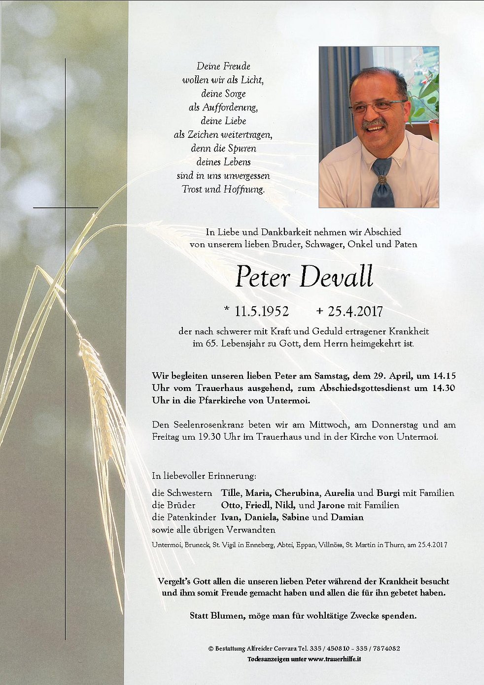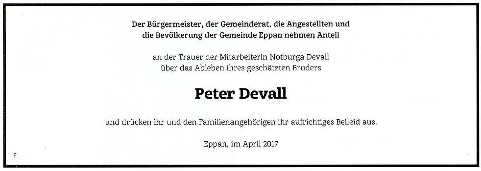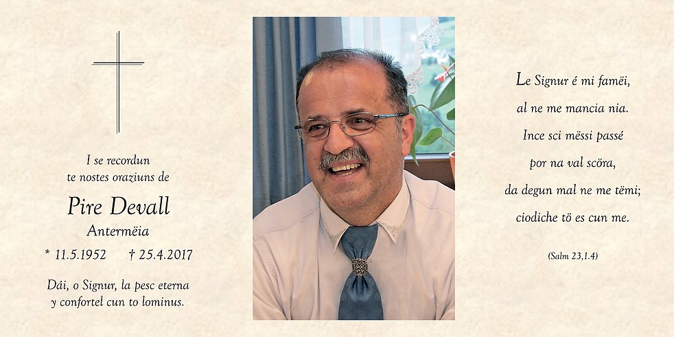 Wir begleiten unseren lieben Peter am Samstag, dem 29. April, um 14.15 Uhr vom Trauerhaus ausgehend, zum Abschiedsgottesdienst um 14.30 Uhr in die Pfarrkirche von Untermoi.