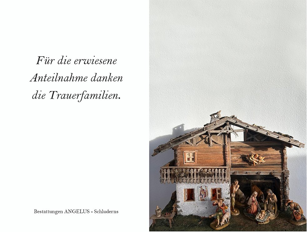 Nach einem langen und erfüllten Leben sanft einschlafen zu dürfen, ist eine Gnade ... Diese Gnade hat unser Herrgott eurem Tata erwiesen und so darf er nun in Frieden ruhen.