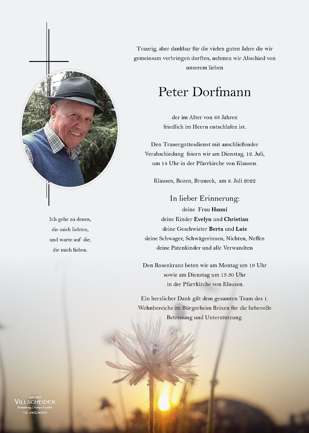 Trauerfeier: 12.07. - 14:00 Uhr Klausen