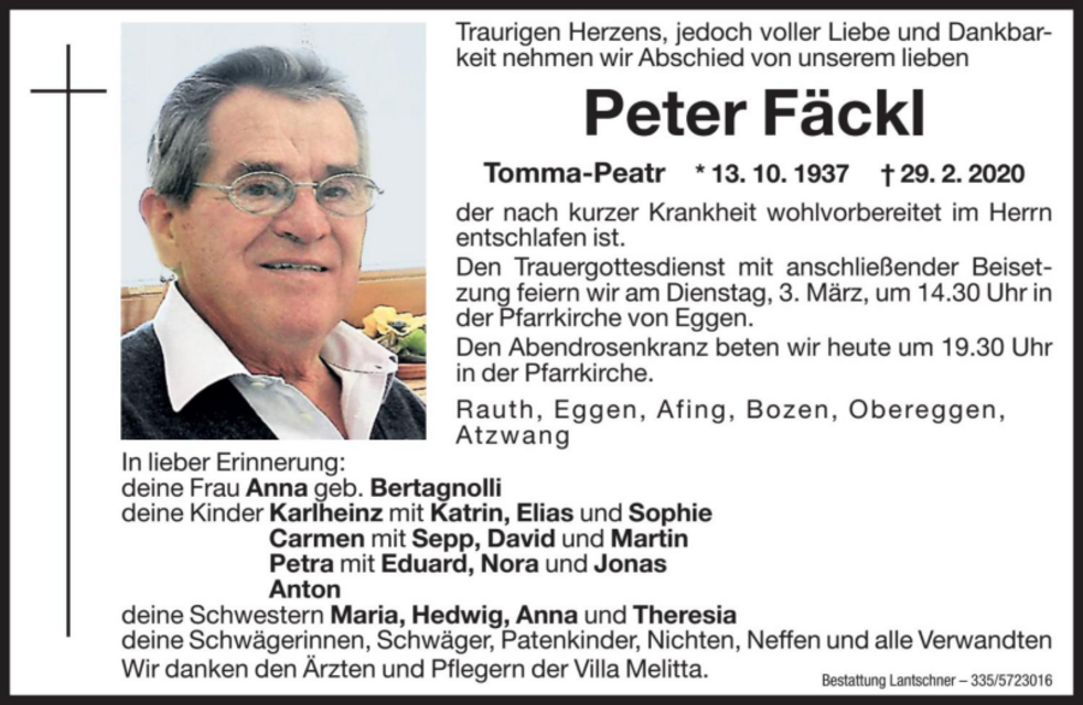 am Dienstag, 3. März, um 14.30 Uhr in der Pfarrkirche von Eggen.