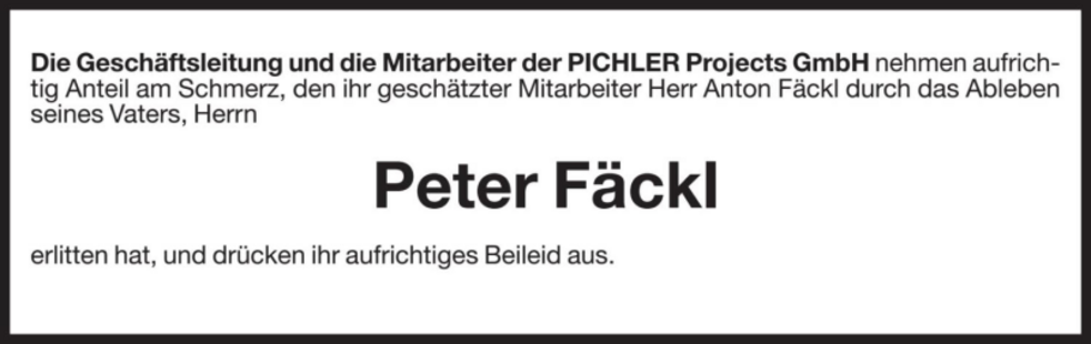 Traurigen Herzens, jedoch voller Liebe und Dankbarkeit