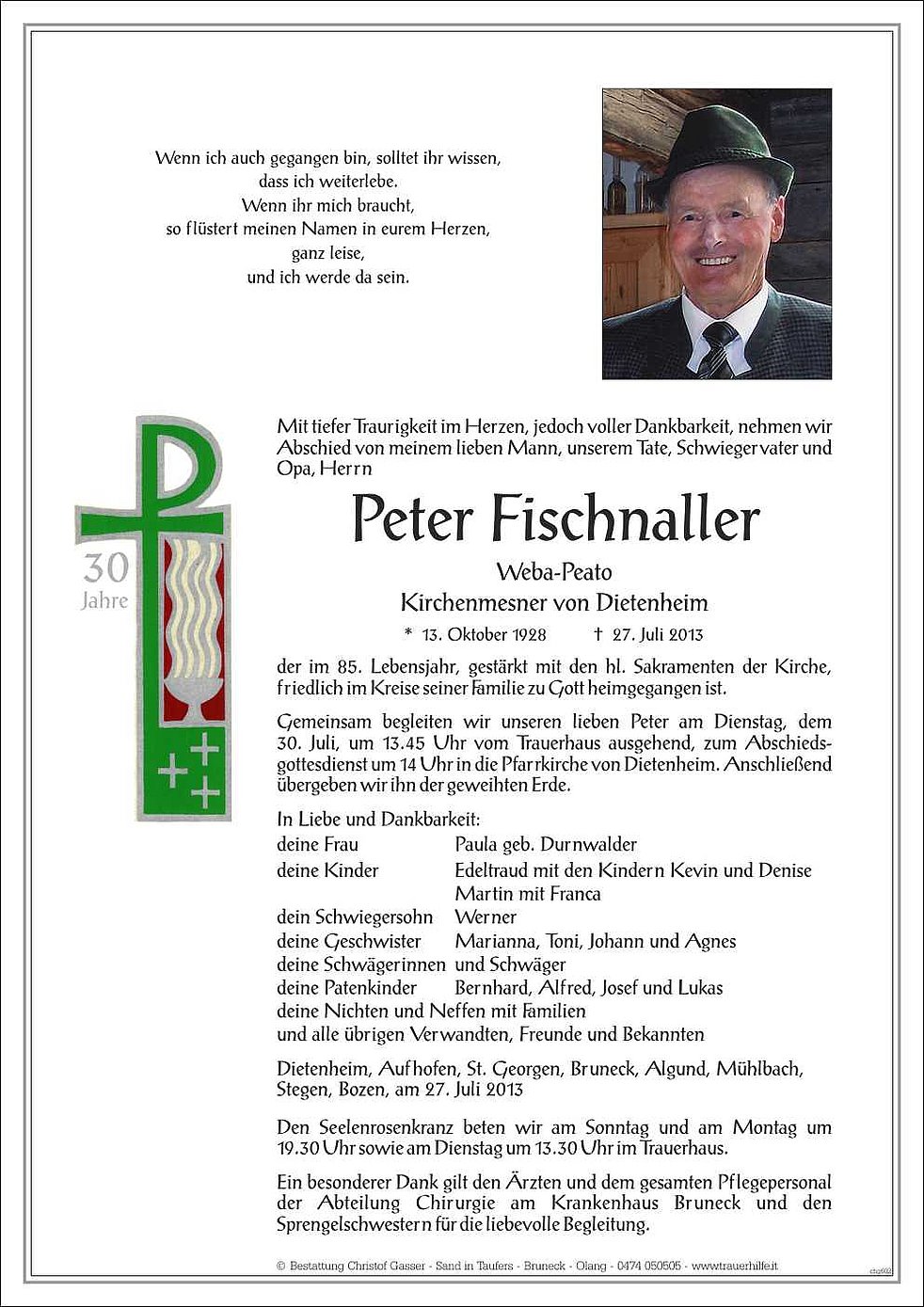 30. Juli, um 13.45 Uhr vom Trauerhaus ausgehend, zum Abschieds-gottesdienst um 14 Uhr in die Pfarrkirche von Dietenheim. Anschließend übergeben wir ihn der geweihten Erde.