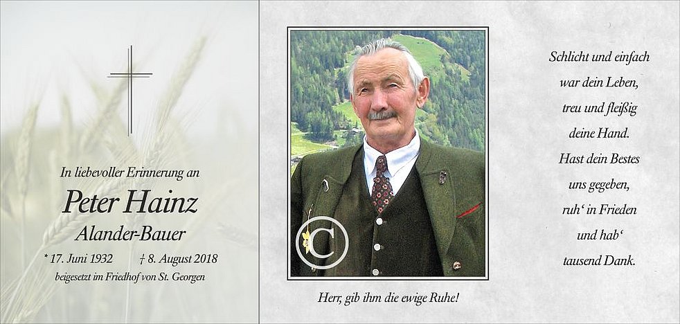 der nach einem arbeitsreichen und pflichtbewussten Leben im Alter von 86 Jahren plötzlich und unerwartet durch Herzversagen zu Gott heimgegangen ist.