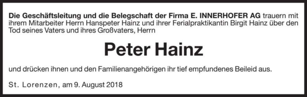 Ein besonderer Dank gilt seinem Vertrauensarzt Herrn Dr. Johann Hainz.