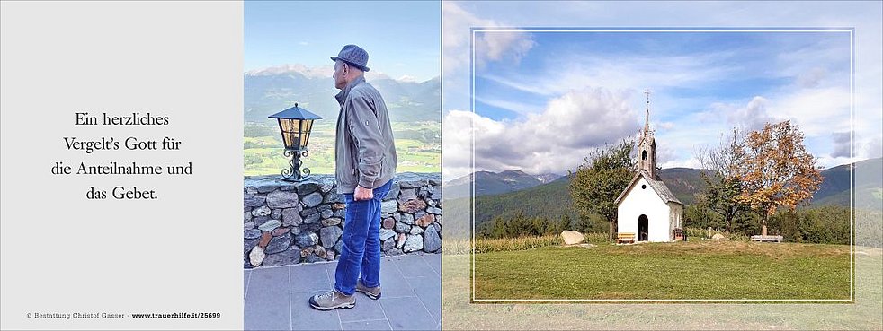 Ein besonderer Dank gilt dem Hausarzt Herrn Dr. Stefan Oberheinricher, der Pflegerin Mariola sowie dem gesamten Pflegepersonal der Abteilung Medizn A am Krankenhaus Bruneck.