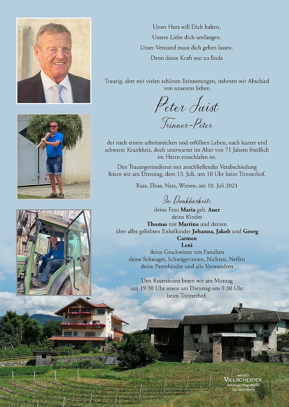 Liebe Maria, liebe Trauerfamilie und liebe Geschwister von Peter.