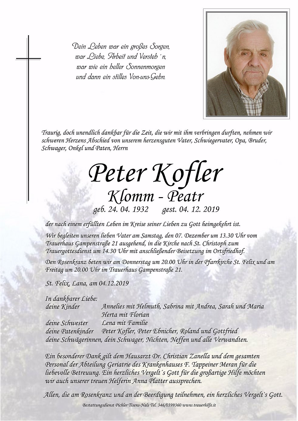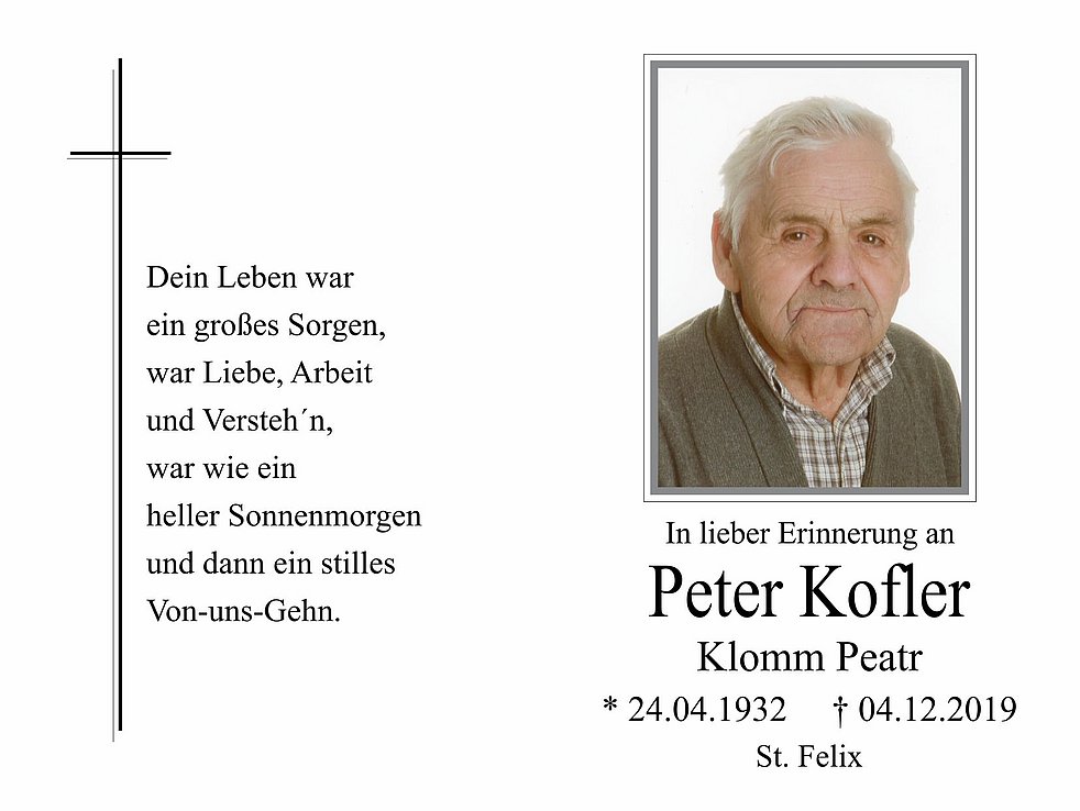 deine Patenkinder Peter Kofler, Peter Ebnicher, Roland und Gottfried