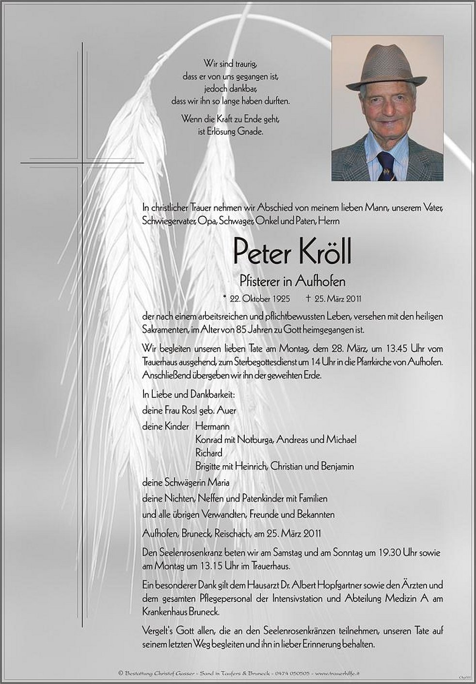 der nach einem arbeitsreichen und pflichtbewussten Leben, versehen mit den heiligen Sakramenten, im Alter von 85 Jahren zu Gott heimgegangen ist.