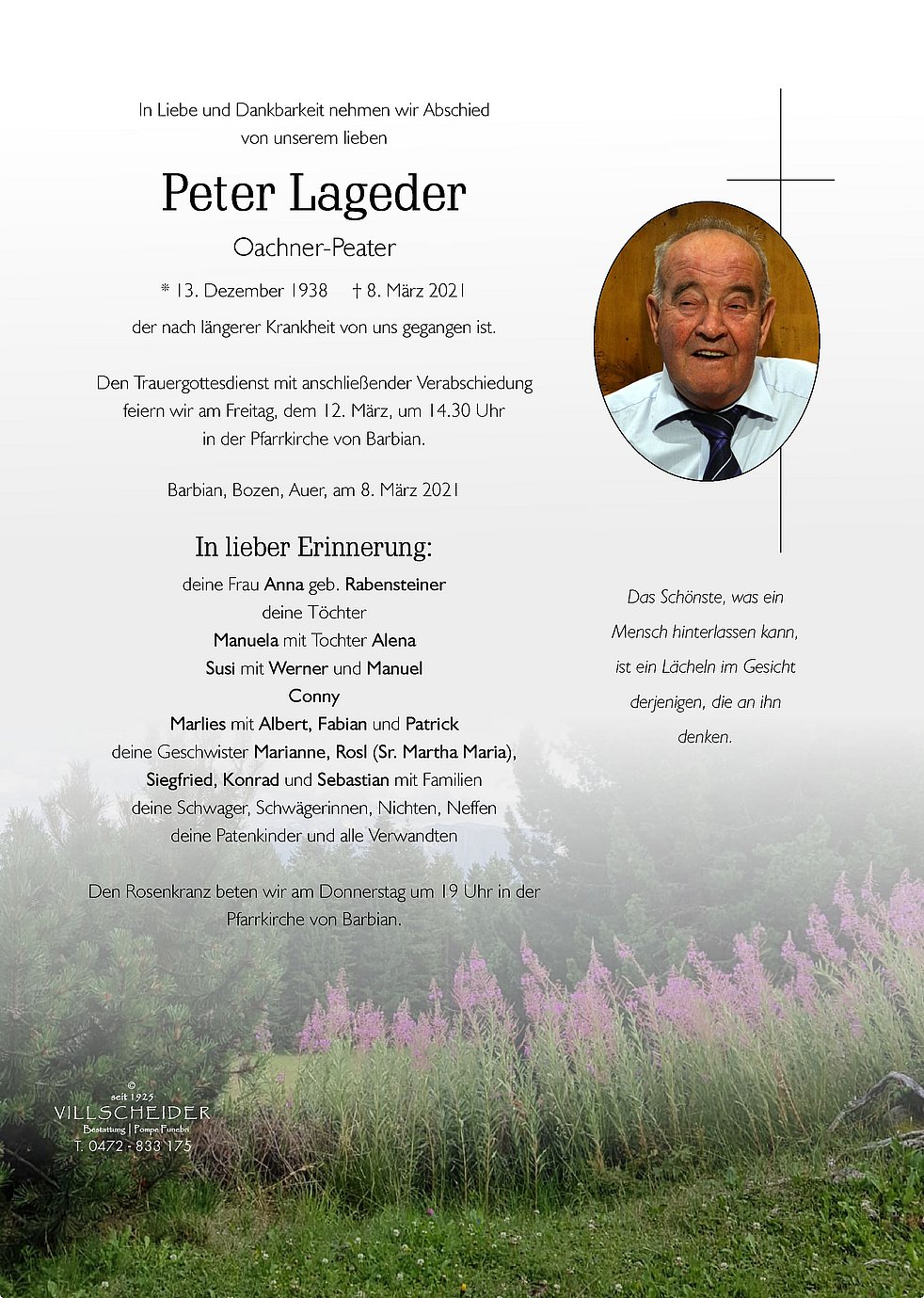 Wer so gewirkt wie Peter im Leben und so erfüllt seine Pflicht und so sein Bestes hat gegeben, der stirbt auch nach dem Tode nicht.