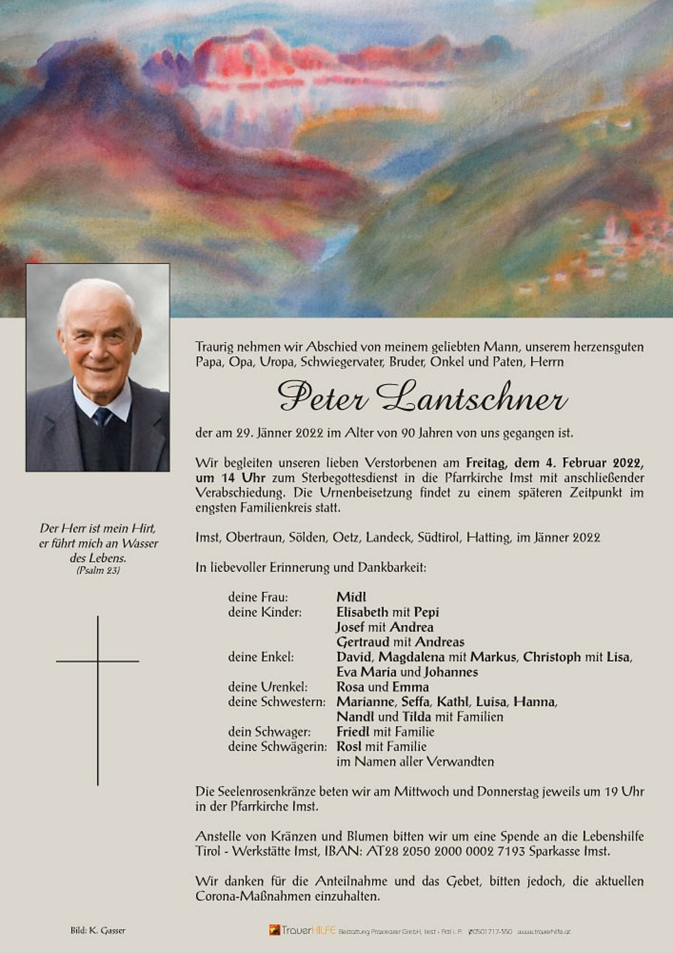 Trauerfeier: 04.02. - 14:00 Uhr Pfarrkirche Imst