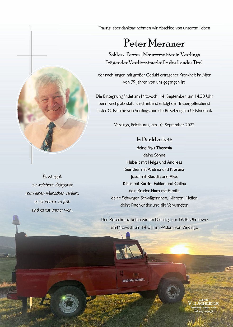 Begräbnisgottesdienst: 14.09. - 14:30 Uhr Verdings