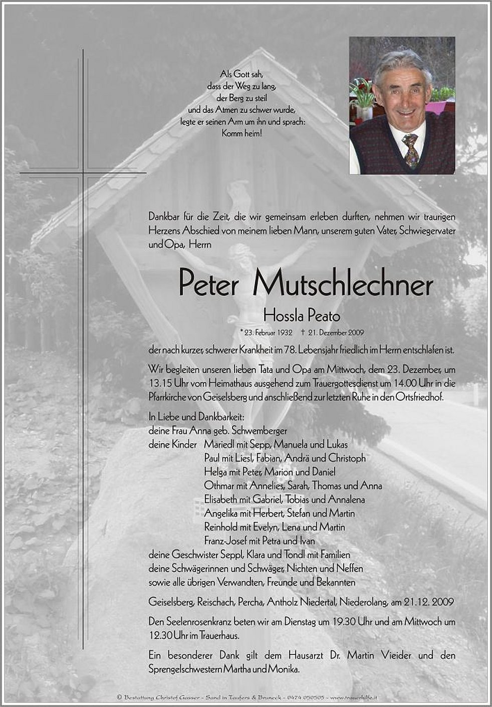 Wir begleiten unseren lieben Tata und Opa am Mittwoch, dem 23. Dezember, um 13.15 Uhr vom Heimathaus ausgehend zum Trauergottesdienst um 14.00 Uhr in die Pfarrkirche von Geiselsberg und anschließend zur letzten Ruhe in den Ortsfriedhof.