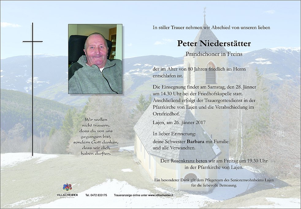 Anschließend erfolgt der Trauergottesdienst in der Pfarrkirche von Lajen und die Verabschiedung im Ortsfriedhof.