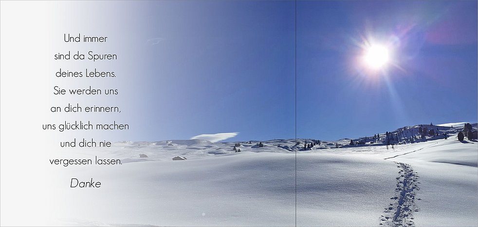 Ein herzlicher Dank gilt dem Hausarzt Herrn Dr. Michael Röd, den Mitarbeitern des Hauskrankenpflegedienstes sowie den Ärzten und dem Pflegepersonal der Krankenhäuser Brixen und Bruneck, besonders dem Team vom Palliativdienst, für die liebevolle Begleitung.