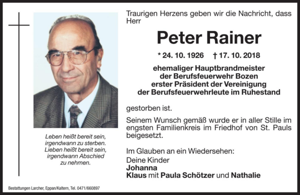 ehemaliger Hauptbrandmeister der Berufsfeuerwehr Bozen