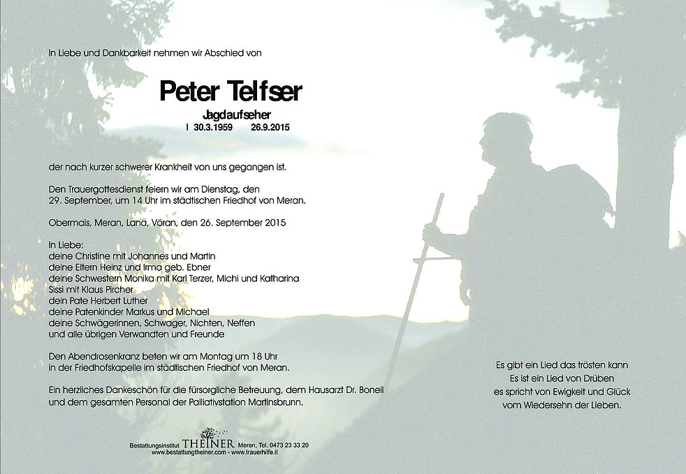 Unser aufrichtiges Beileid der trauernden Familie Telfser