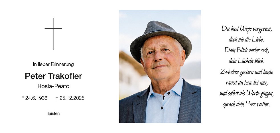 Wir möchten dir liebe Gabi und lieber Dominik und der gesamten Familie Trakofler unser aufrichtiges Mitgefühl und unsere Anteilnahme übermitteln.