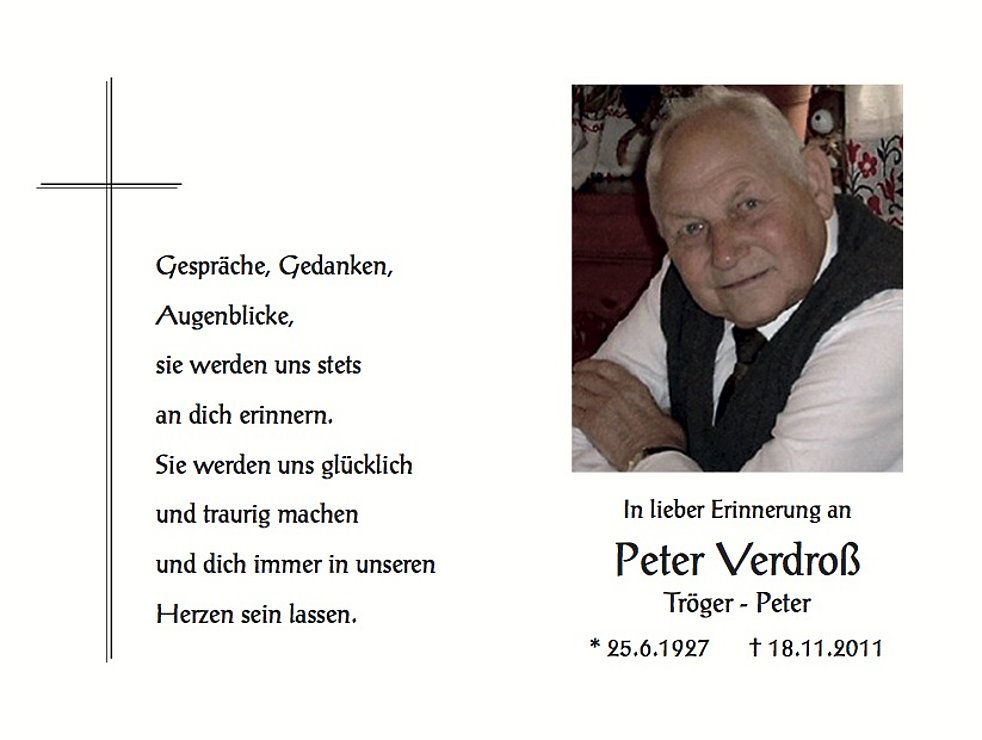 In stiller Trauer und großer Dankbarkeit nehmen wir Abschied von unserem guten Vater, Schwiegervater, Opa, Uropa, Bruder, Onkel und Paten, Herrn