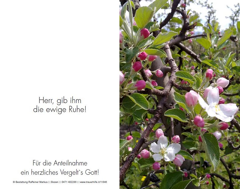 Anstatt Blumen auf das Grab zu legen, möge man für die Pfarrkirche Terlan spenden.