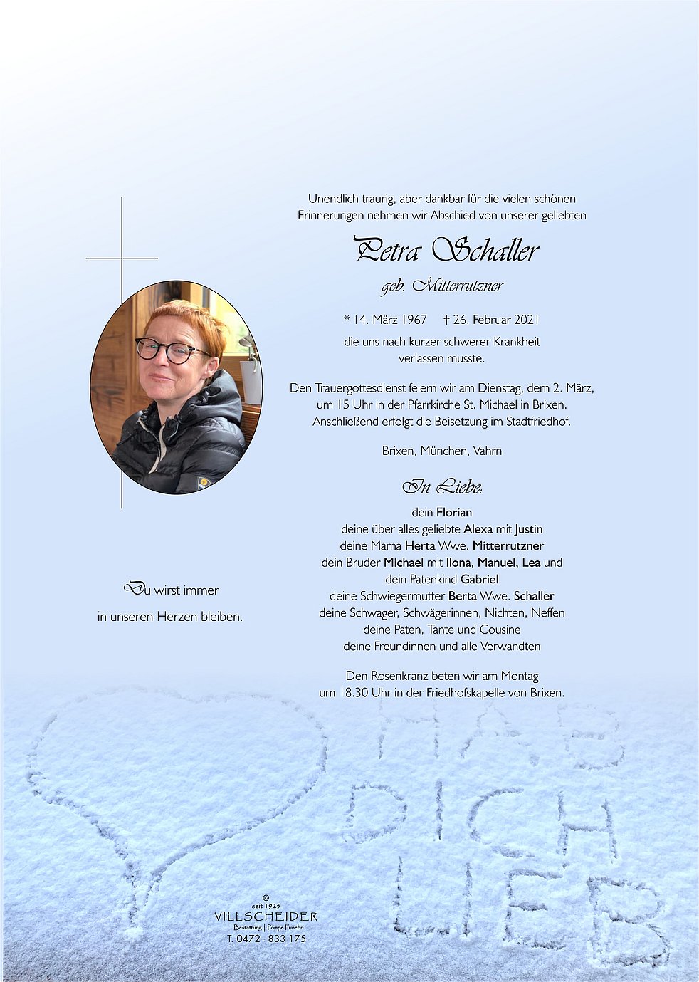 Unsere aufrichtige Anteilnahme am Verlust eurer geliebten Petra. Wir wünschen euch viel Kraft.
