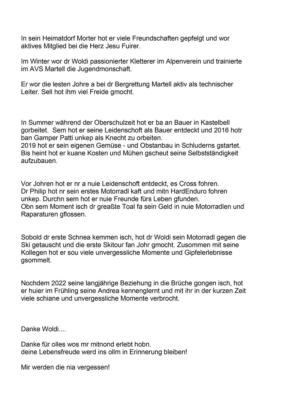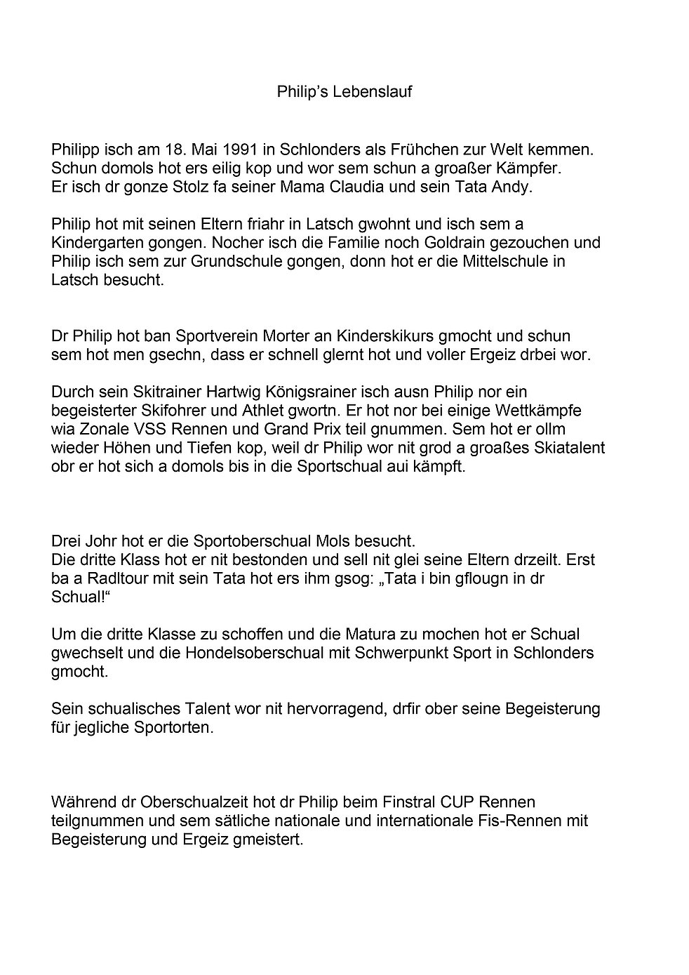 Liebe Claudia, lieber Andy, ich erinnere mich gerne zurück an den kleinen Philipp am Gardasee und in Villnöß. Groß war er geworden und ihr könnt stolz sein auf ihn!