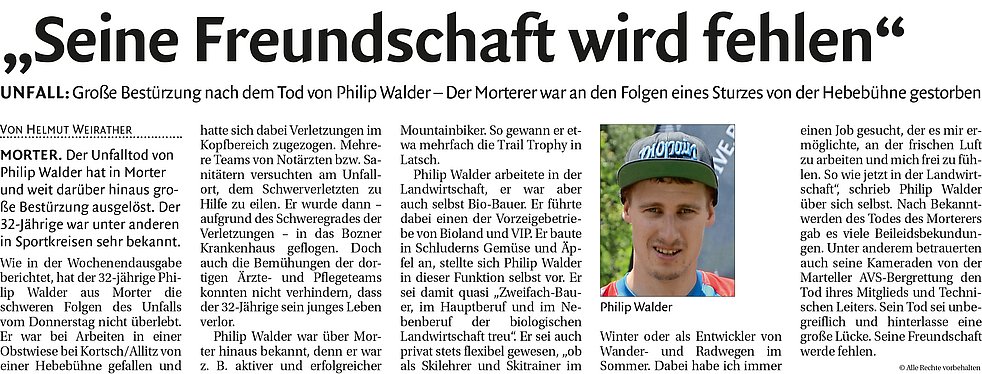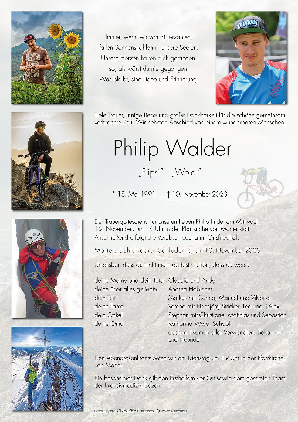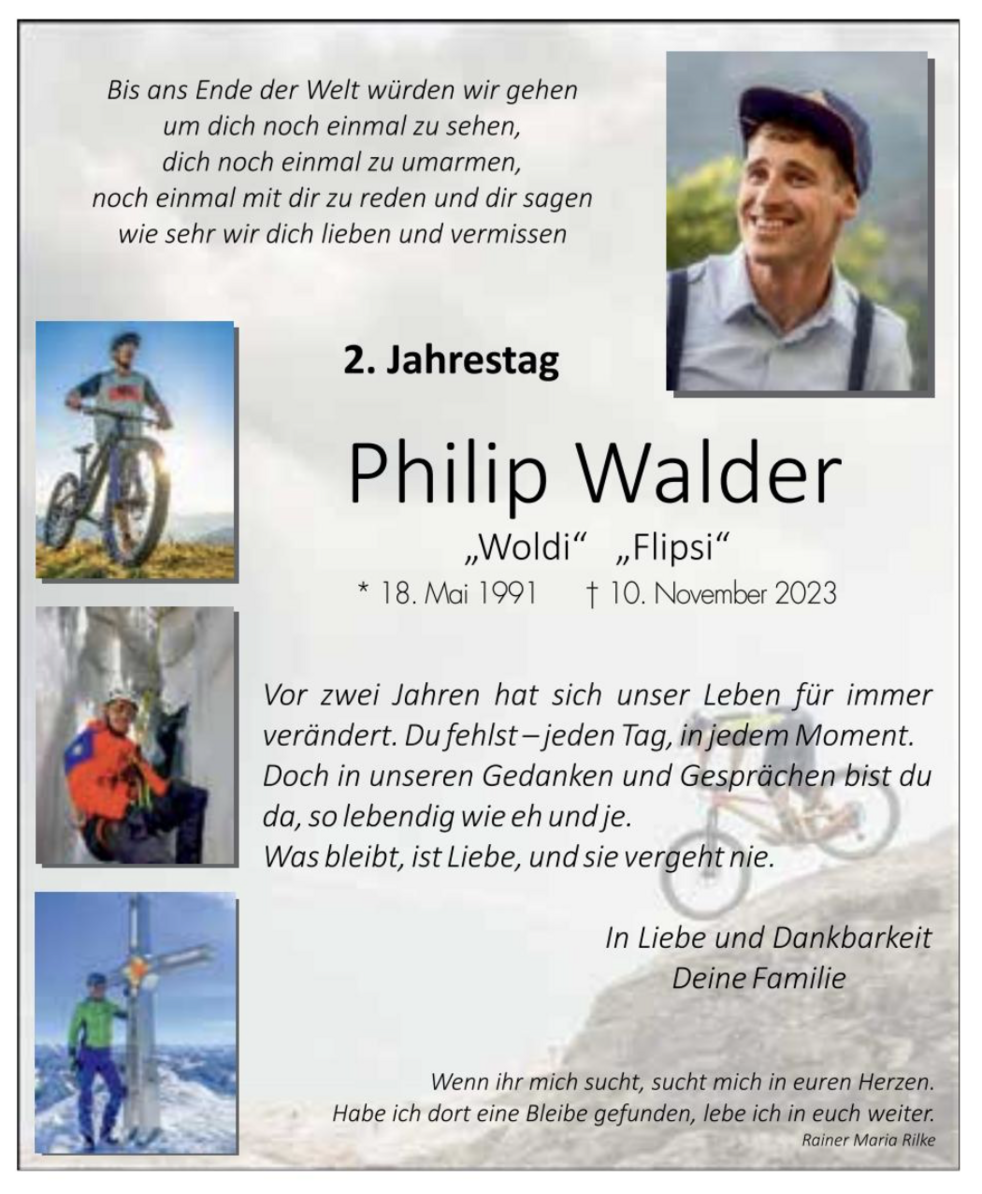 Möge Euch der Gedanke, dass Euer Philip sein kurzes Leben in Freude und Freiheit in seiner geliebten Natur, in Ausübung seiner sportlichen Fähigkeiten -auch im Einsatz für seine Mitmenschen in Not - und in der Gewissheit von Euch geliebt zu werden genießen konnte, etwas Trost schenken.
