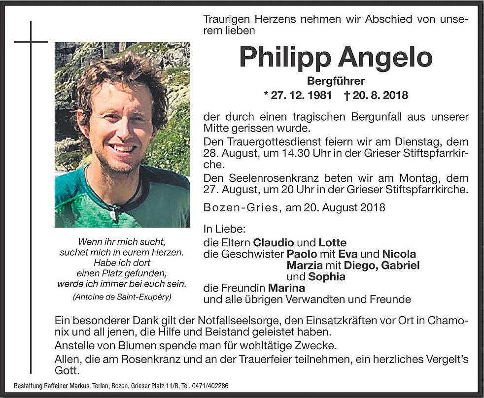 Ein besonderer Dank gilt der Notfallseelsorge, den Einsatzkräften vor Ort in Chamonix und all jenen, die Hilfe und Beistand geleistet haben.
