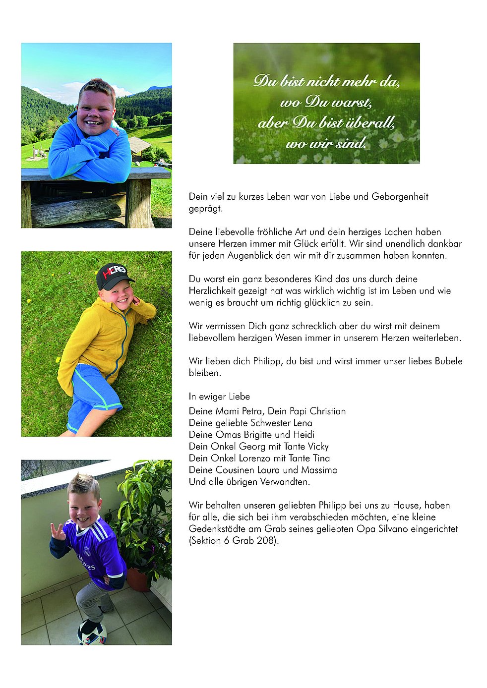 Wir behalten unseren geliebten Philipp bei uns zu Hause, haben für alle, die sich bei ihm verabschieden möchten, eine kleine Gedenkstädte am Grab seines geliebten Opa Silvano eingerichtet (Sektion 6 Grab 208).