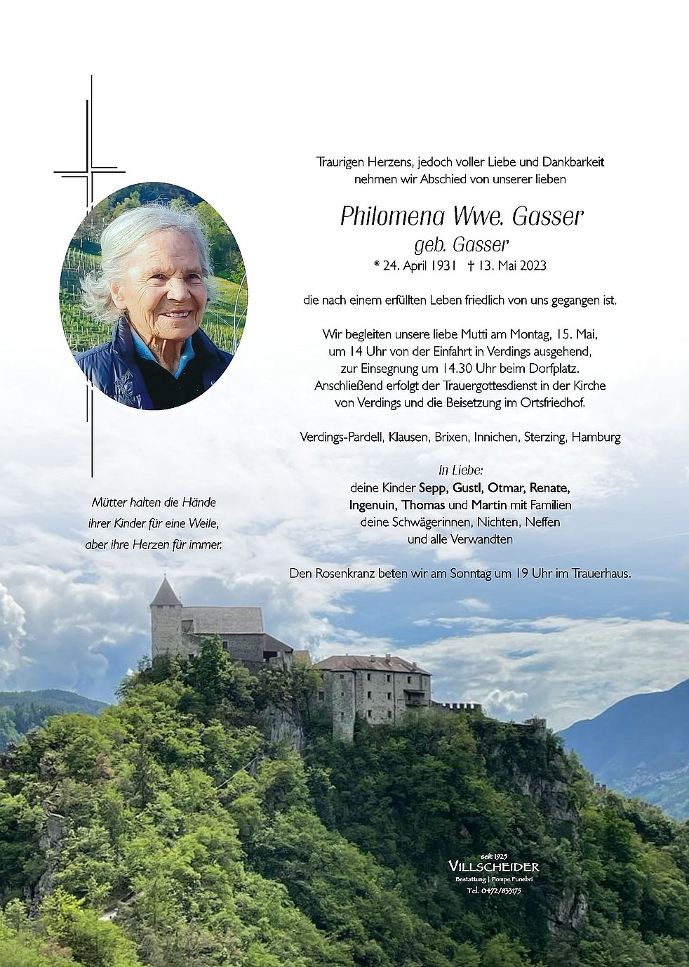 Sie wird Euch alle von oben beschuetzen. Die Mutter war's, was braucht's der Worte mehr.
