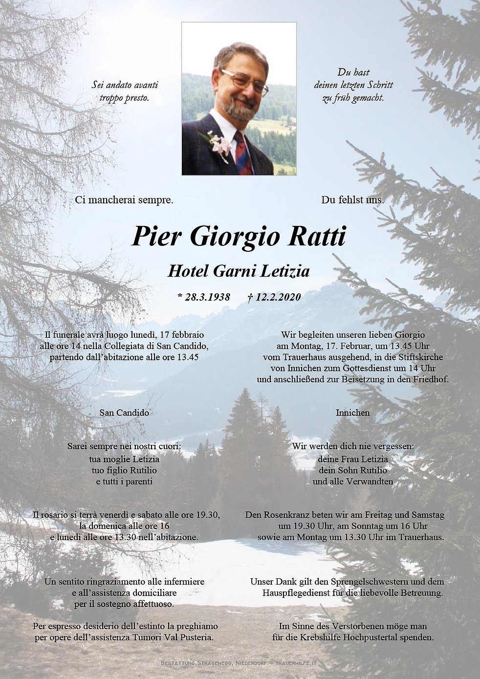 Begräbnisgottesdienst: 17.02. - 14:00 Uhr Innichen