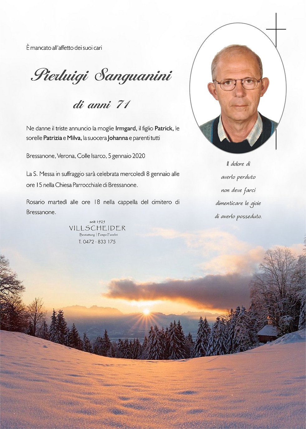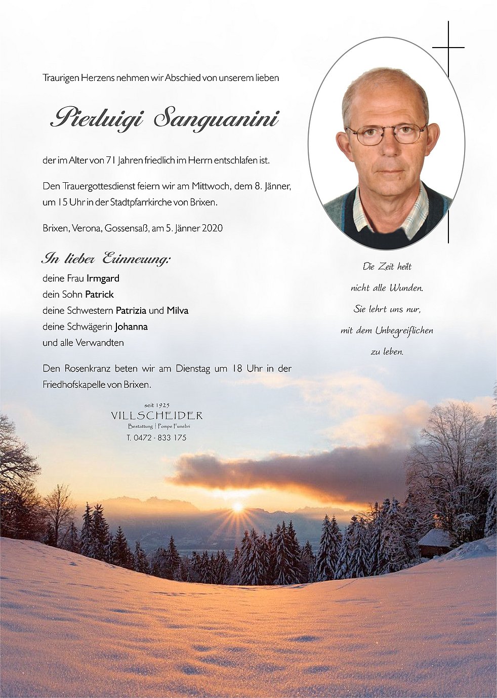 Begräbnisgottesdienst: 08.01. - 15:00 Uhr Brixen; Bressanone