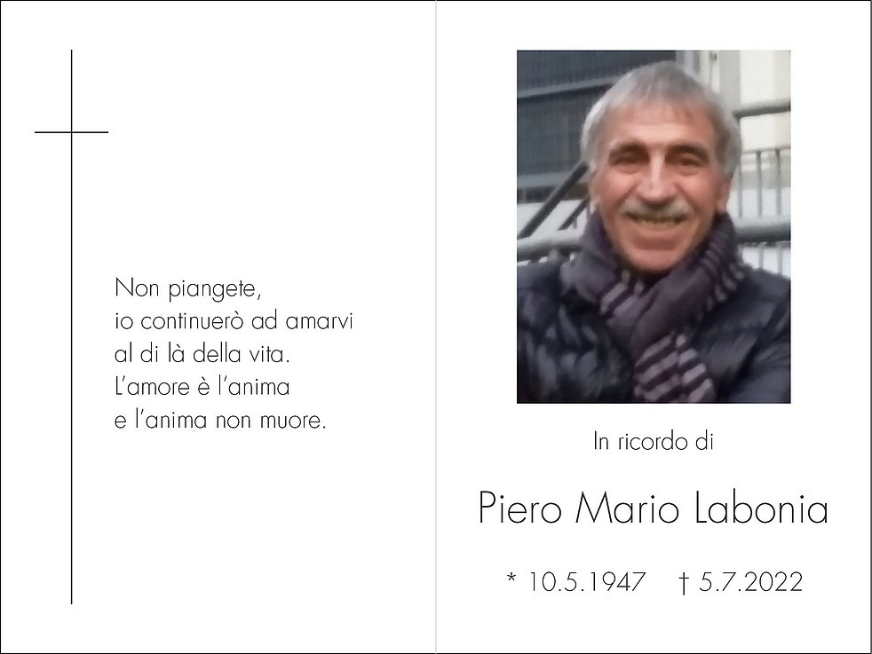 Ne danno il triste annuncio la moglie Herta, i figli Patrick con Mara, Vanessa con Enrico, i nipoti Andrea, Chiara, Luca, Riccardo, la sorella Giovanna con famiglia e parenti tutti.