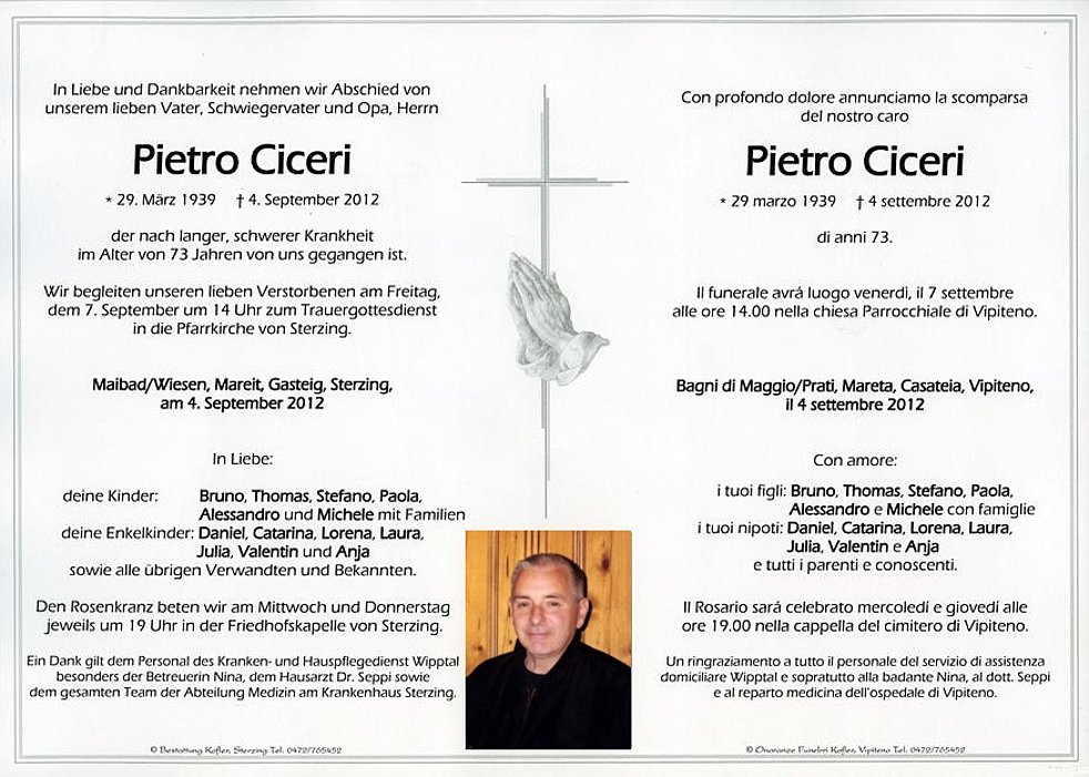 um 14 Uhr zum Trauergottesdienst in die Pfarrkirche von Sterzing.
