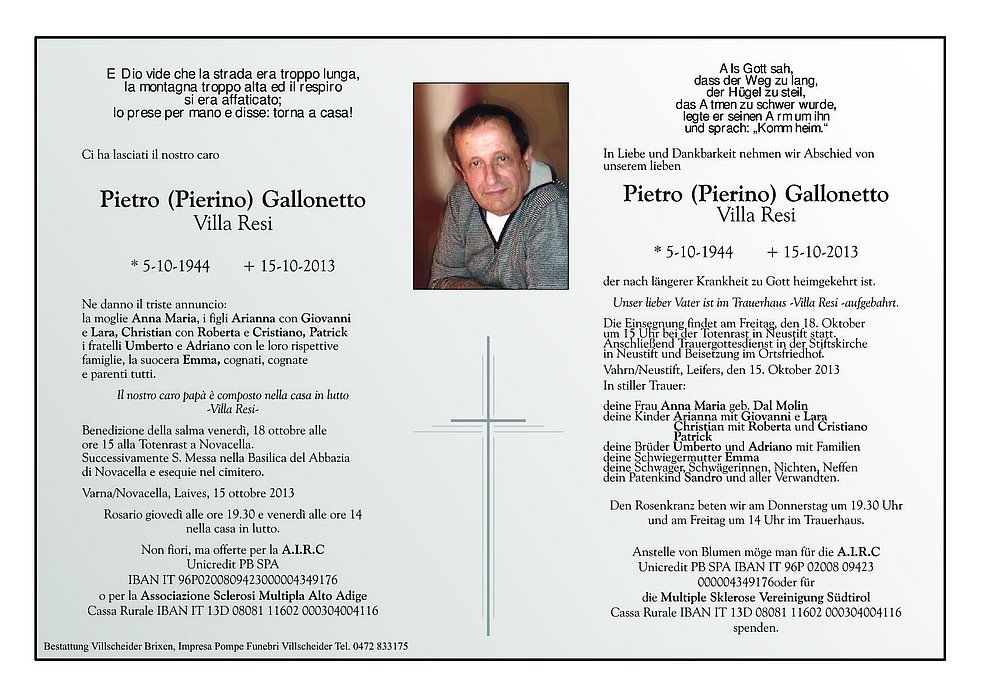 Unser lieber Vater ist im Trauerhaus -Villa Resi -aufgebahrt.
