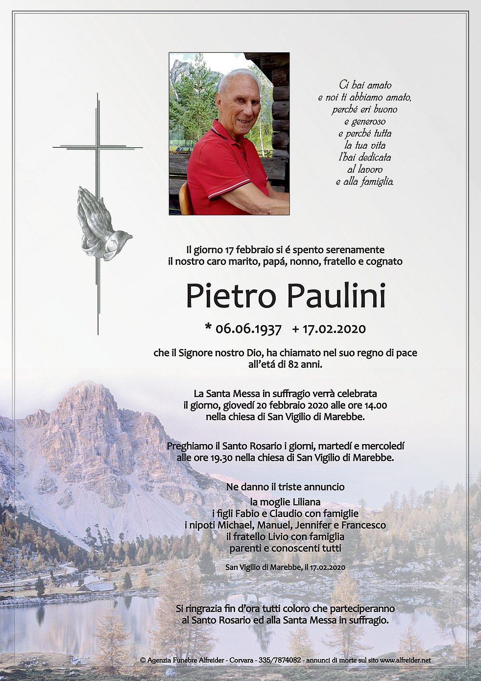 La Santa Messa in suffragio verrà celebrata il giorno, giovedí 20 febbraio 2020 alle ore 14.00 nella chiesa di San Vigilio di Marebbe.