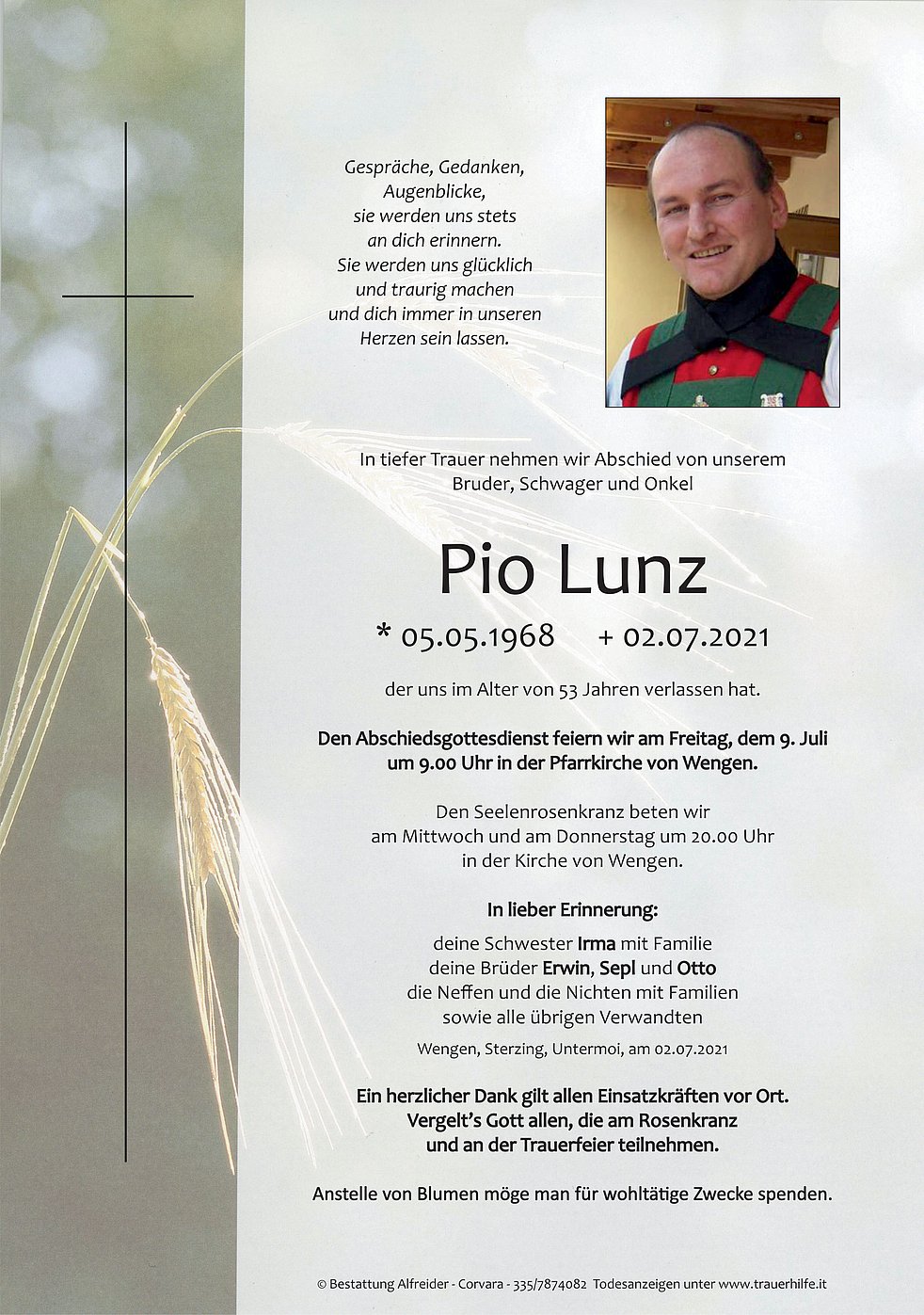Anstelle von Blumen möge man für wohltätige Zwecke spenden.