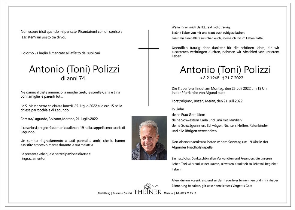 Un sentito ringraziamento a tutti parenti e amici che lo hanno assistito