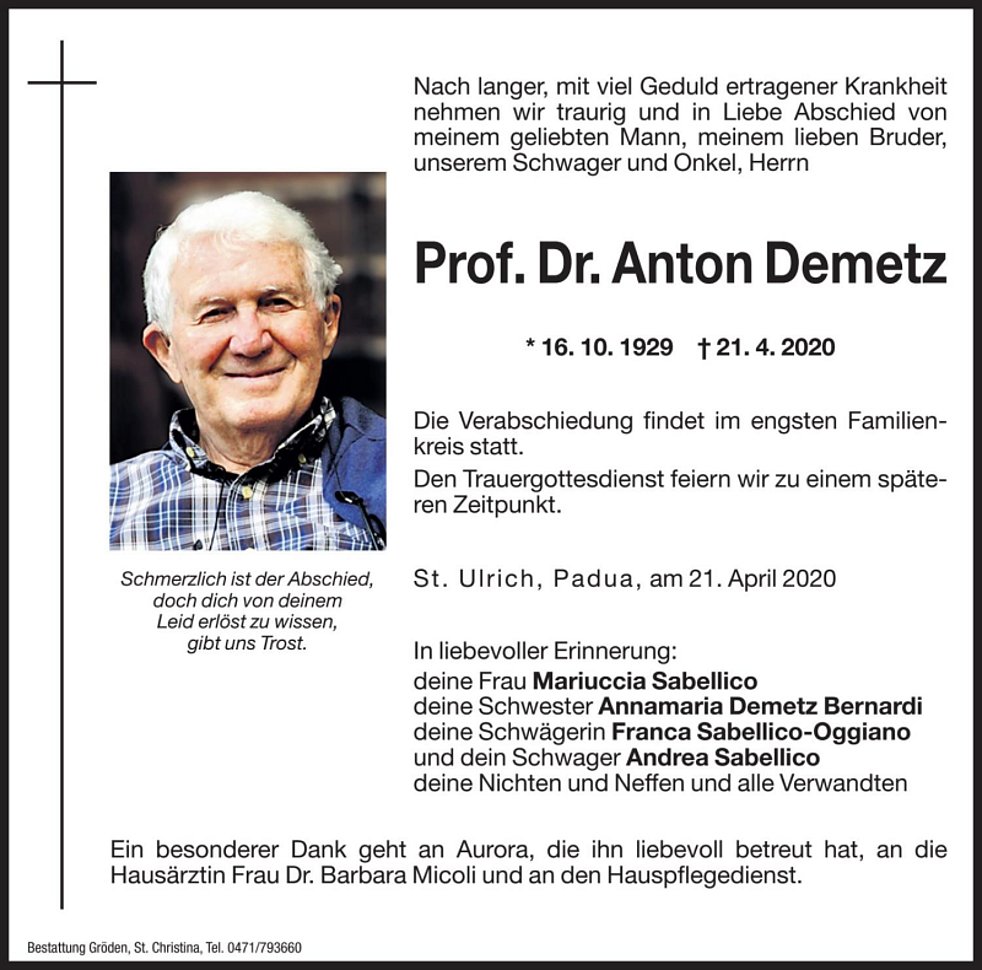 Prof. Dr. Anton Demetz