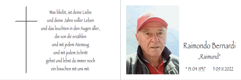 Den Trauergottesdienst mit anschließender Verabschiedung feiern wir am Freitag, dem 11. November, um 14.30 Uhr im St.-Anna-Kirchlein im Friedhof von St. Ulrich.