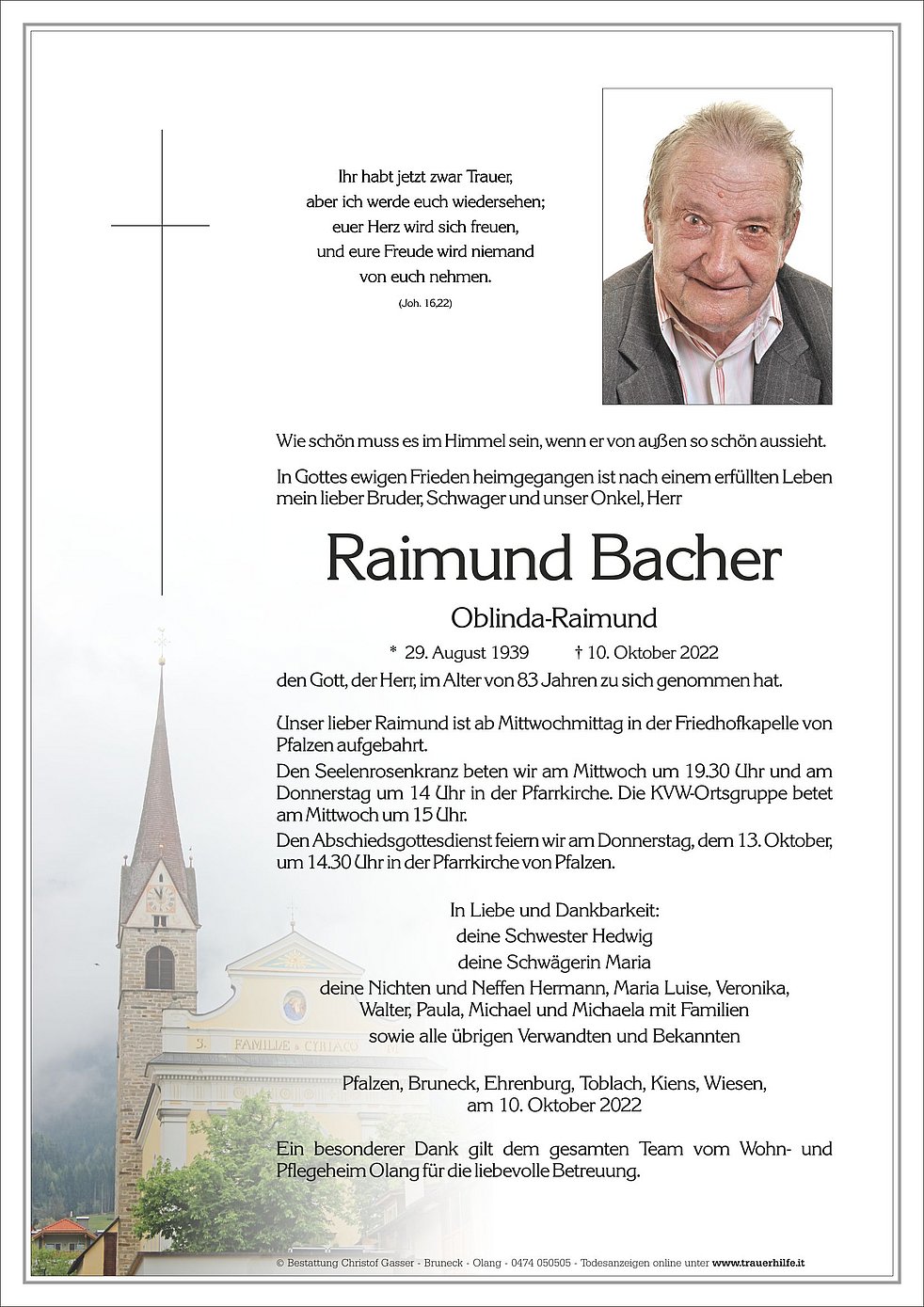 Unser lieber Raimund ist ab Mittwochmittag in der Friedhofkapelle von Pfalzen aufgebahrt.