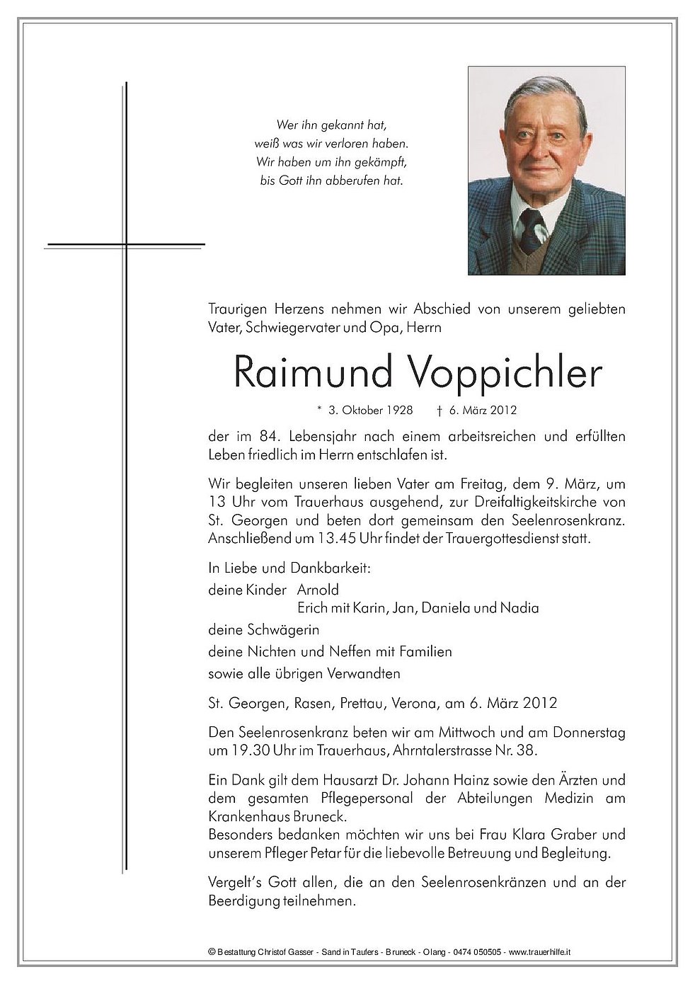 der im 84. Lebensjahr nach einem arbeitsreichen und erfüllten Leben friedlich im Herrn entschlafen ist.