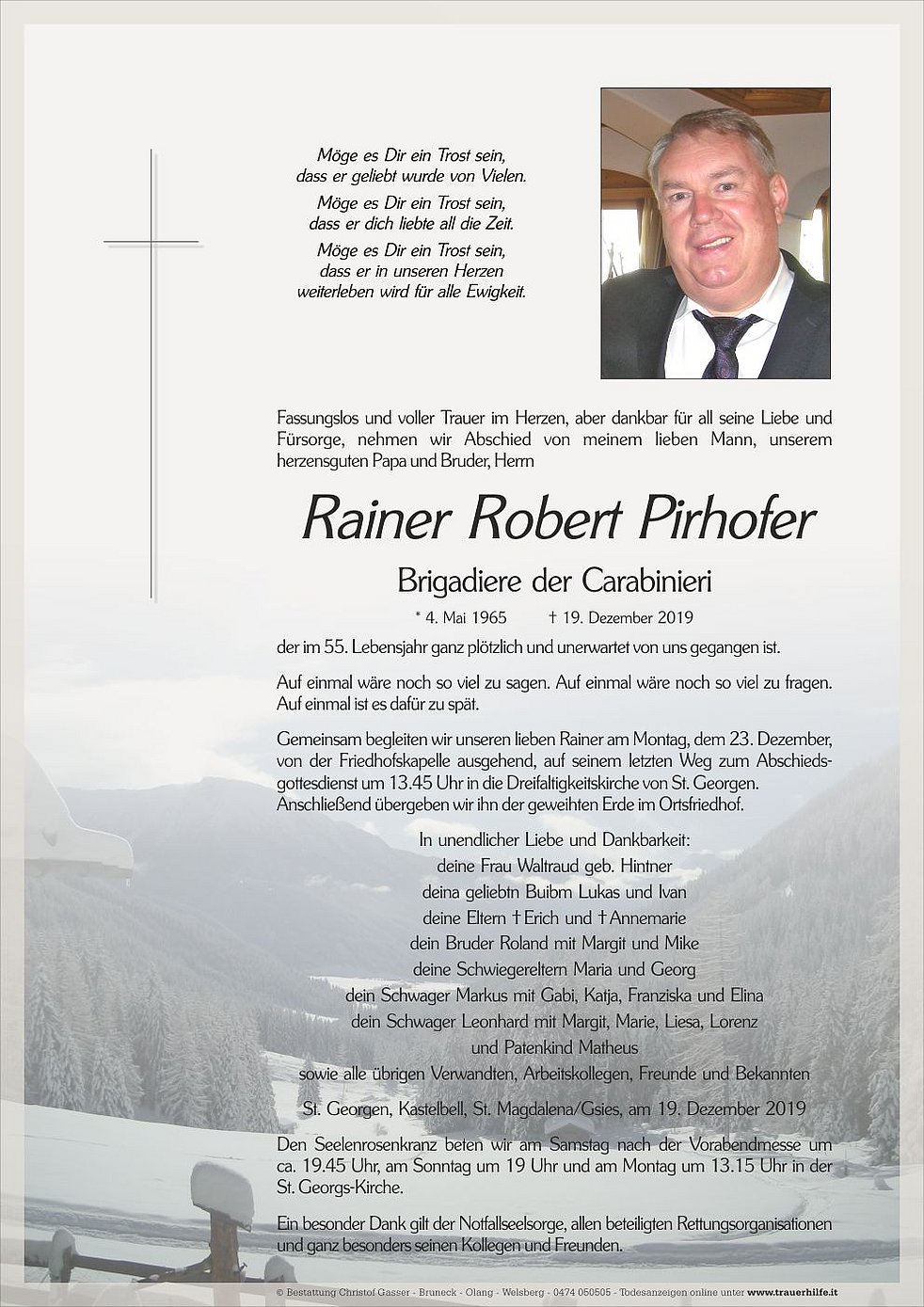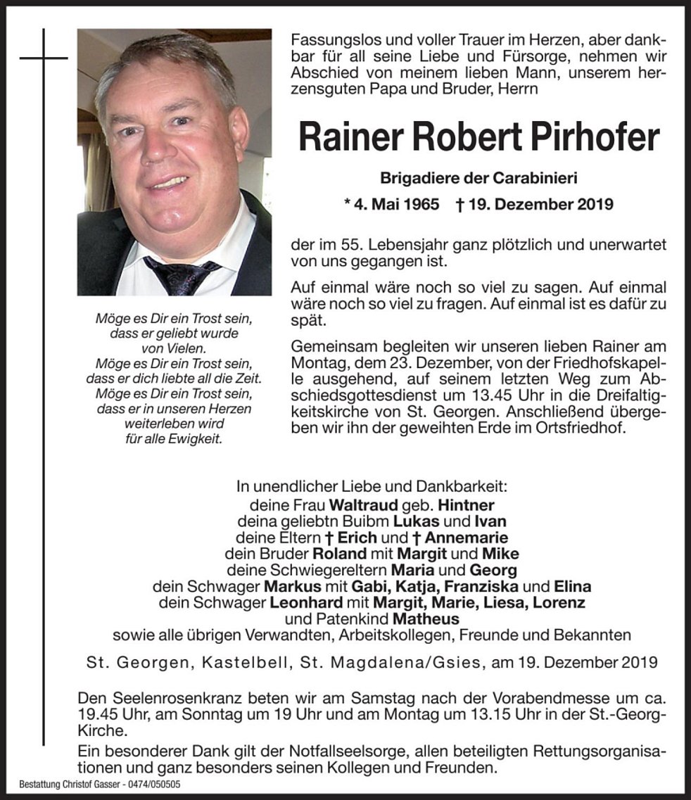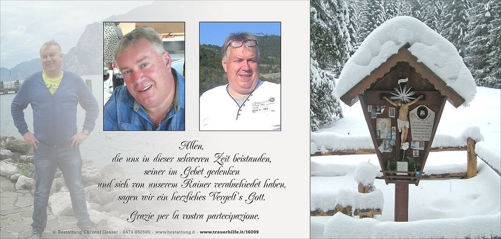 Gemeinsam begleiten wir unseren lieben Rainer am Montag, dem 23. Dezember, von der Friedhofskapelle ausgehend, auf seinem letzten Weg zum Abschieds-gottesdienst um 13.45 Uhr in die Dreifaltigkeitskirche von St. Georgen.