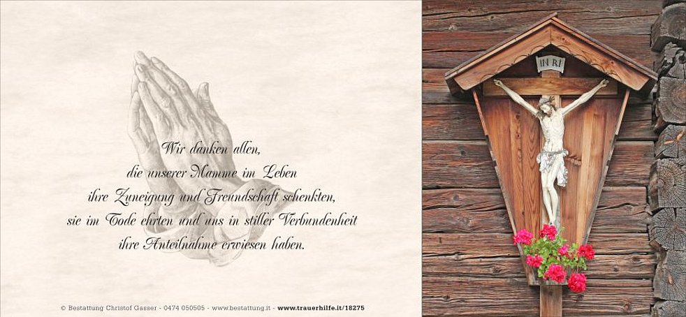 Vergelt’s Gott allen, die unsere liebe Mamme besucht und begleitet haben und sie in liebevoller Erinnerung behalten.