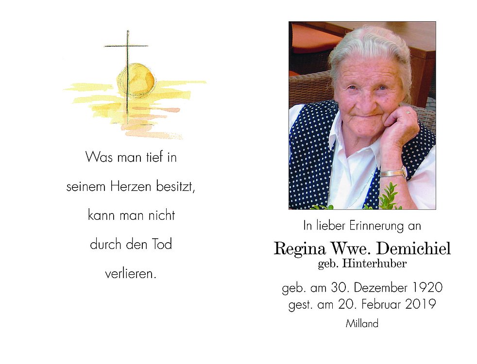 Begräbnisgottesdienst: 22.02. - 14:30 Uhr Milland Josef Freinademetz Kirche