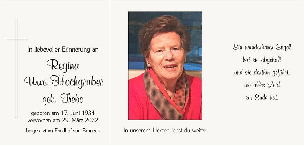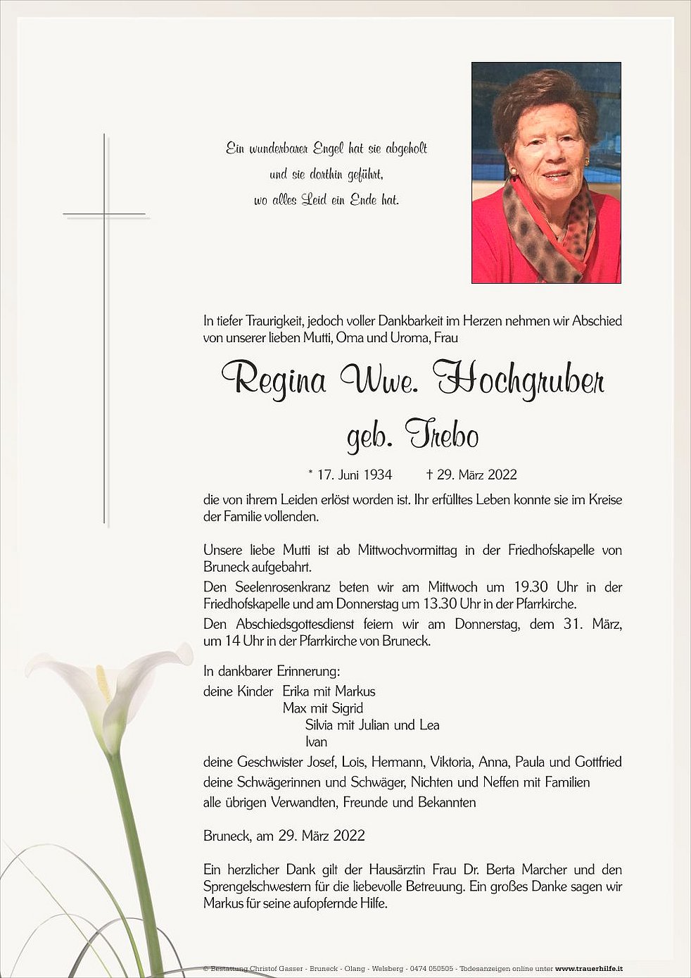 1955 heiratet Regina ihren Robert. Leider blieb auch sie von schweren Schicksalsschlägen nicht verschont. Eine schwere Krankheit ihres Mannes und der tödliche Unfall eines ihrer Söhne trafen Regina hart.