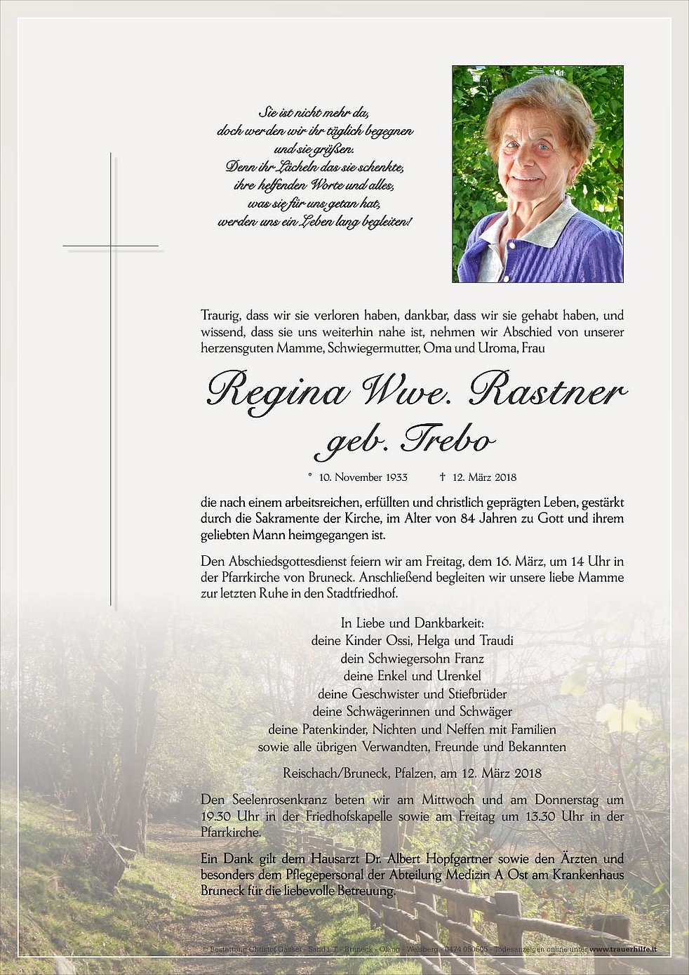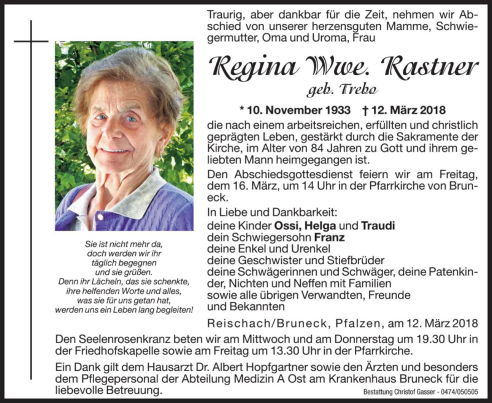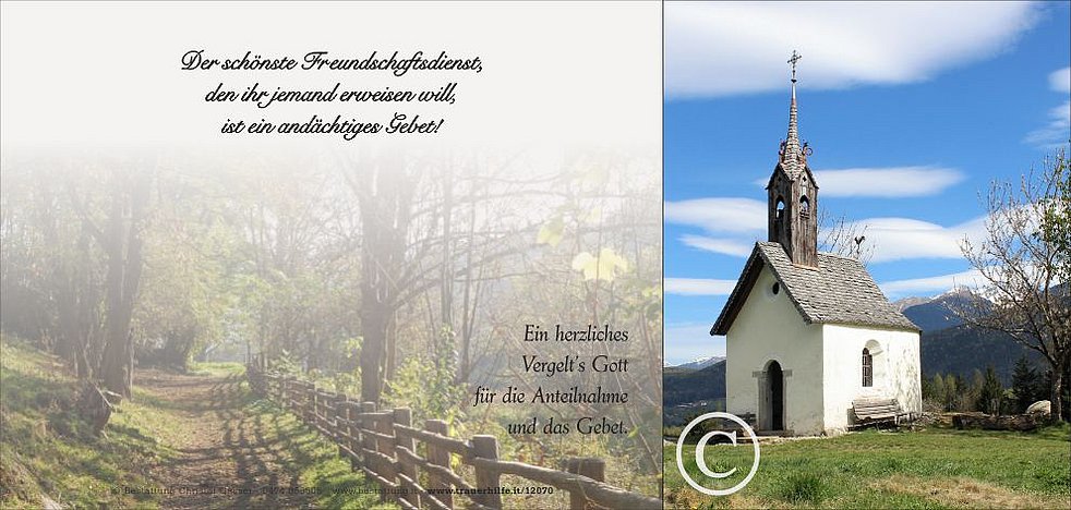 Den Abschiedsgottesdienst feiern wir am Freitag, dem 16. März, um 14 Uhr in der Pfarrkirche von Bruneck. Anschließend begleiten wir unsere liebe Mamme zur letzten Ruhe in den Stadtfriedhof.