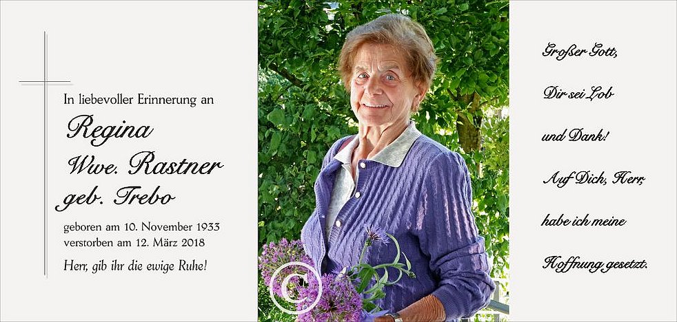 die nach einem arbeitsreichen, erfüllten und christlich geprägten Leben, gestärkt durch die Sakramente der Kirche, im Alter von 84 Jahren zu Gott und ihrem geliebten Mann heimgegangen ist.