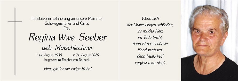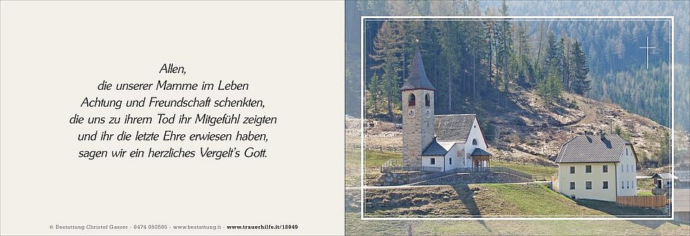 Vergelt’s Gott allen, die unsere Mamme in guter Erinnerung behalten und ihrer im Gebet gedenken.