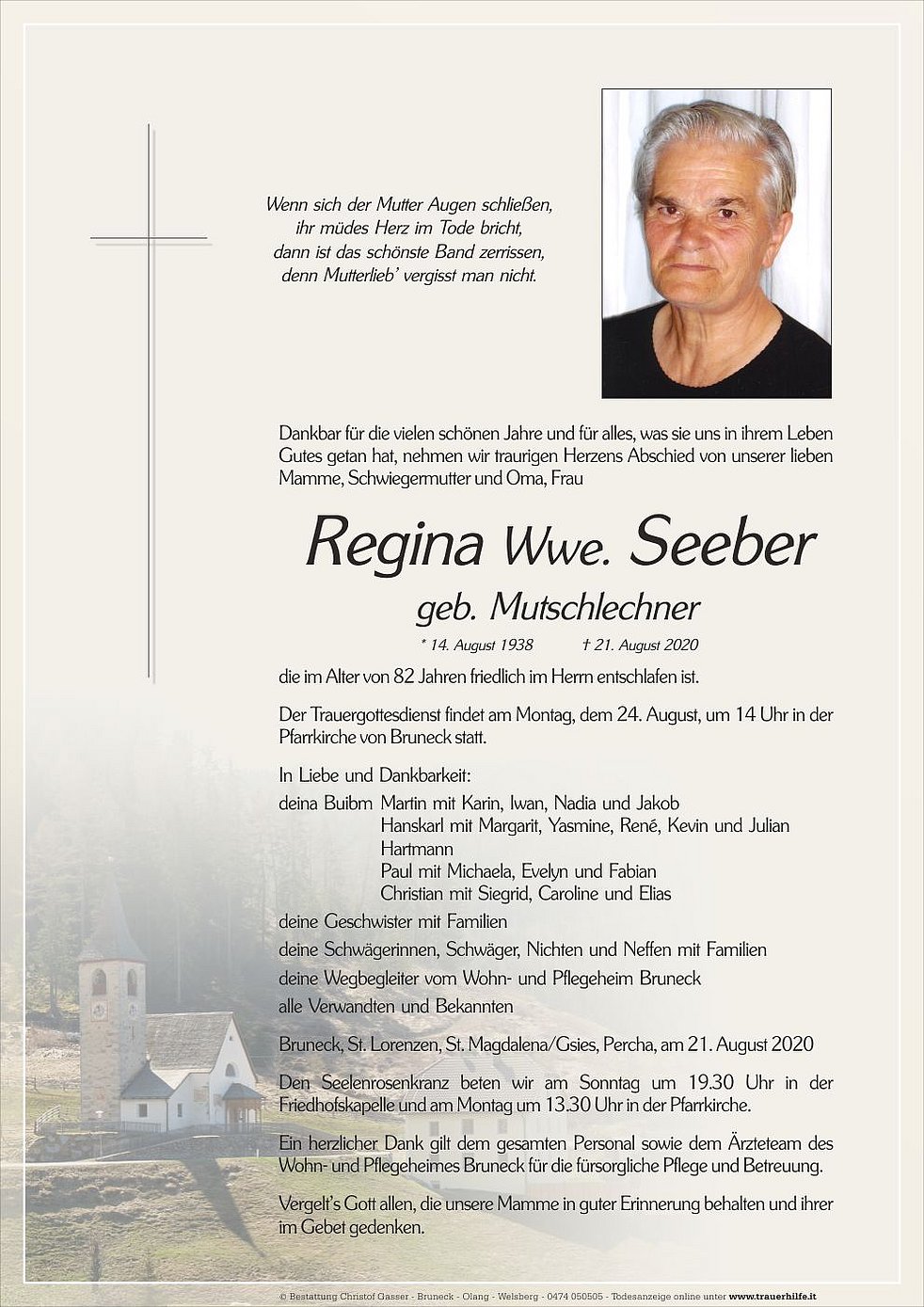 Der Trauergottesdienst findet am Montag, dem 24. August, um 14 Uhr in der Pfarrkirche von Bruneck statt.