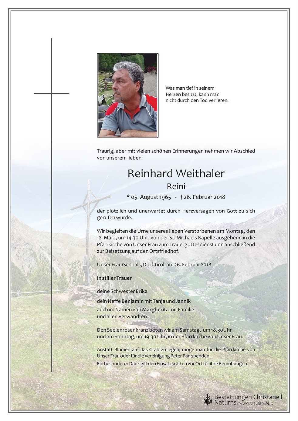Wir begleiten die Urne unseres lieben Verstorbenen am Montag, den 12. März, um 14.30 Uhr, von der St. Michaels Kapelle ausgehend in die Pfarrkirche von Unser Frau zum Trauergottesdienst und anschließend zur Beisetzung auf den Ortsfriedhof.